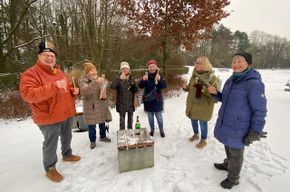 Kleiner Umdrunk im Schnee, das hat doch was. Die älteste war heute 84 Jahre und wir waren zu acht, zwei entschuldigt. Es wollen nicht immer alle aufs Foto! Man braucht sich nicht anmelden, ist einfach mit guter Laune dabei und es macht viel Freude.